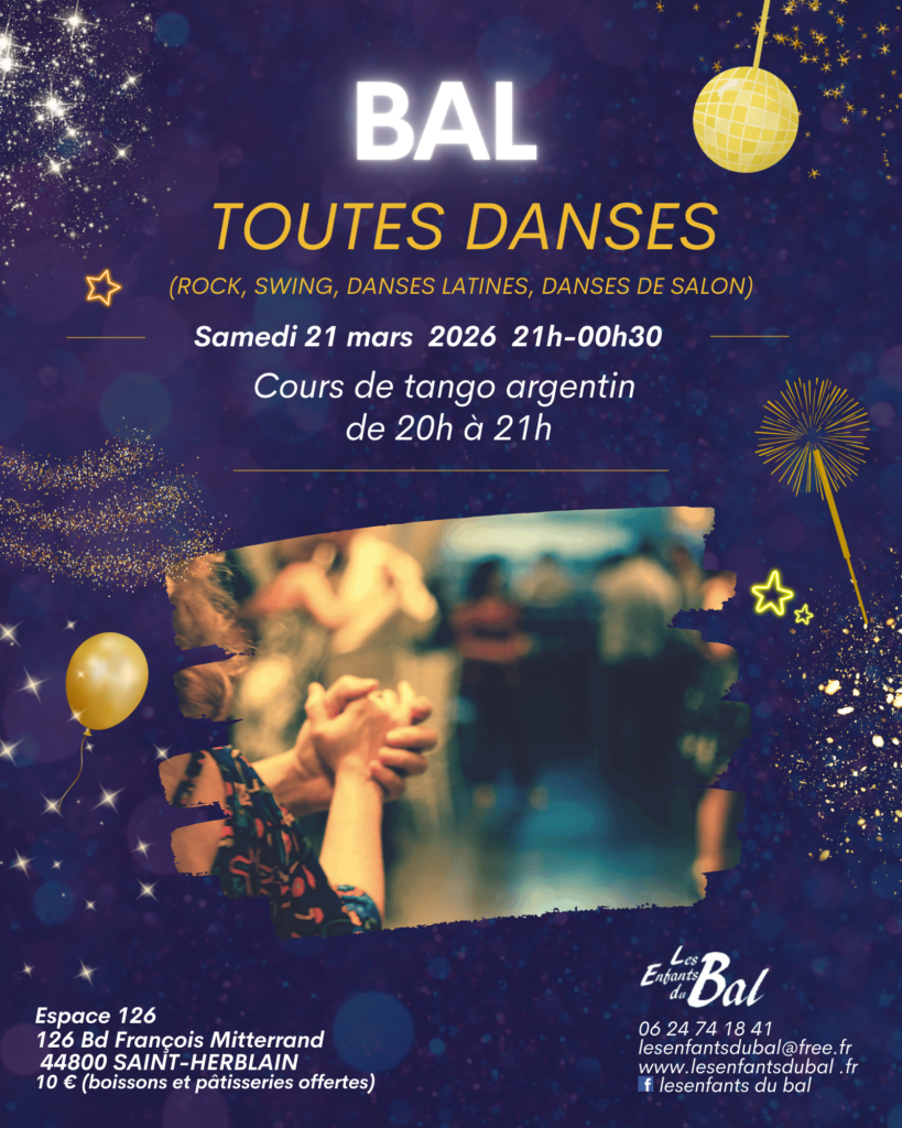 Samedi 21 mars : Atelier tango argentin suivi d'un Bal toutes danses